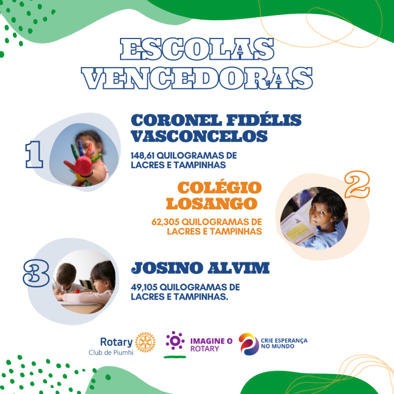 Na última-feira (26/06), os associados do Rotary Club de Piumhi realizaram a cerimônia de entrega de certificados, troféus e brindes para os alunos e as escolas vencedoras do projeto "Cidadania e Meio Ambiente" e do primeiro concurso de redação com o tema “Imagine o Rotary”.