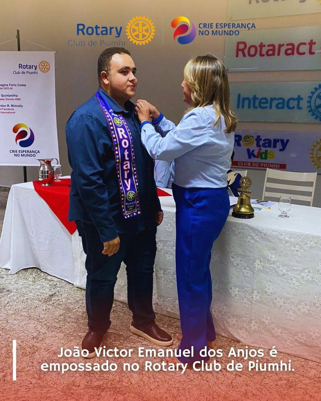 O jornalista João Vítor Emanuel dos Anjos decidiu se juntar ao quadro associativo do Rotary Club de Piumhi e foi recebido pelo club no dia 06 de maio de 2024. Seja bem vindo, companheiro!